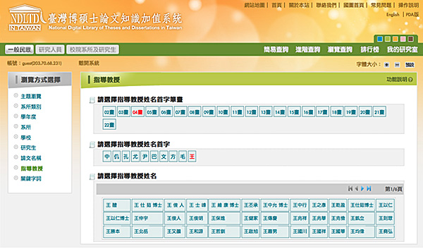 3.請選擇指導教授姓名的連結,系統將載入該以該指導教授姓名為查詢詞的簡目檢視頁面。